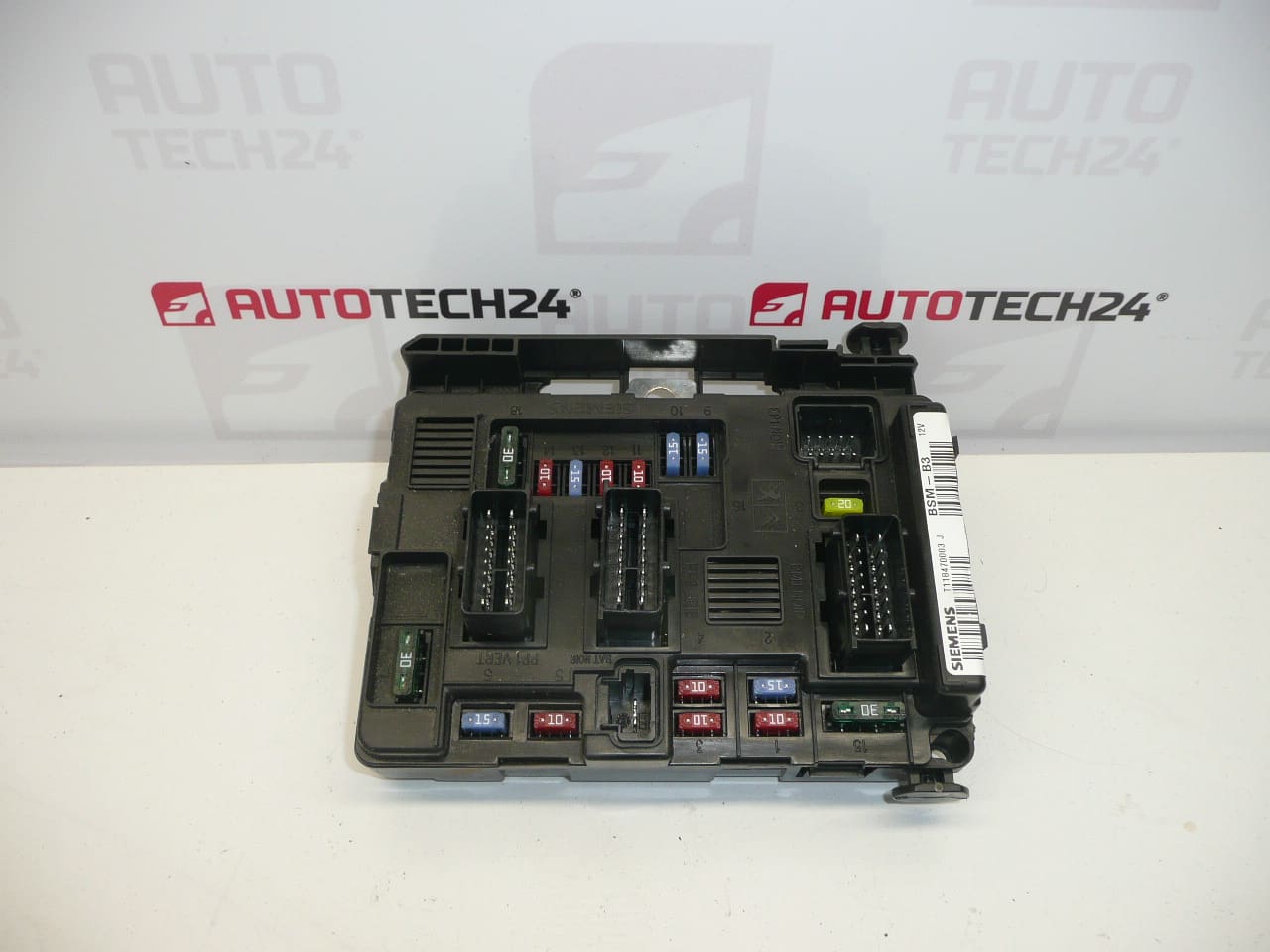 BSM (jedinica motora / osigurač i relejni modul u odjeljku motora) tip BSM B3 Siemens za automobile Citroën i Peugeot. Često pretraživan po broju 9643498880. Dio je namijenjen kao zamjena za nefunkcionalnu jedinicu koja može uzrokovati razne električne kvarove u napajanju i uključivanju strujnog kruga.
