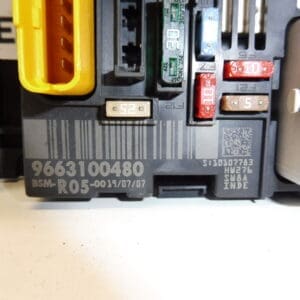 BSM R05-00 9663100480 smješten je u plastičnom kućištu u motoru odmah pored akumulatora. Prije demontaže BSM jedinice potrebno je odspojiti pozitivnu terminal baterije. Zatim odvrnuti maticu 13 mm. Odvojite i skinite sve konektore osim jednog s kojim ćemo izvlačiti jedinicu prema sebi. S bočnih strana jedinice nalaze se mali zupci. Potrebno ih je odključati ravnim odvijačem dok istovremeno povlačimo posljednji kabel prema sebi. Zatim, s donje strane jedinice, potrebno je osloboditi 2 zupca koja drže velike osigurače. I to je to. Instalaciju izvodimo obrnutim redoslijedom.
