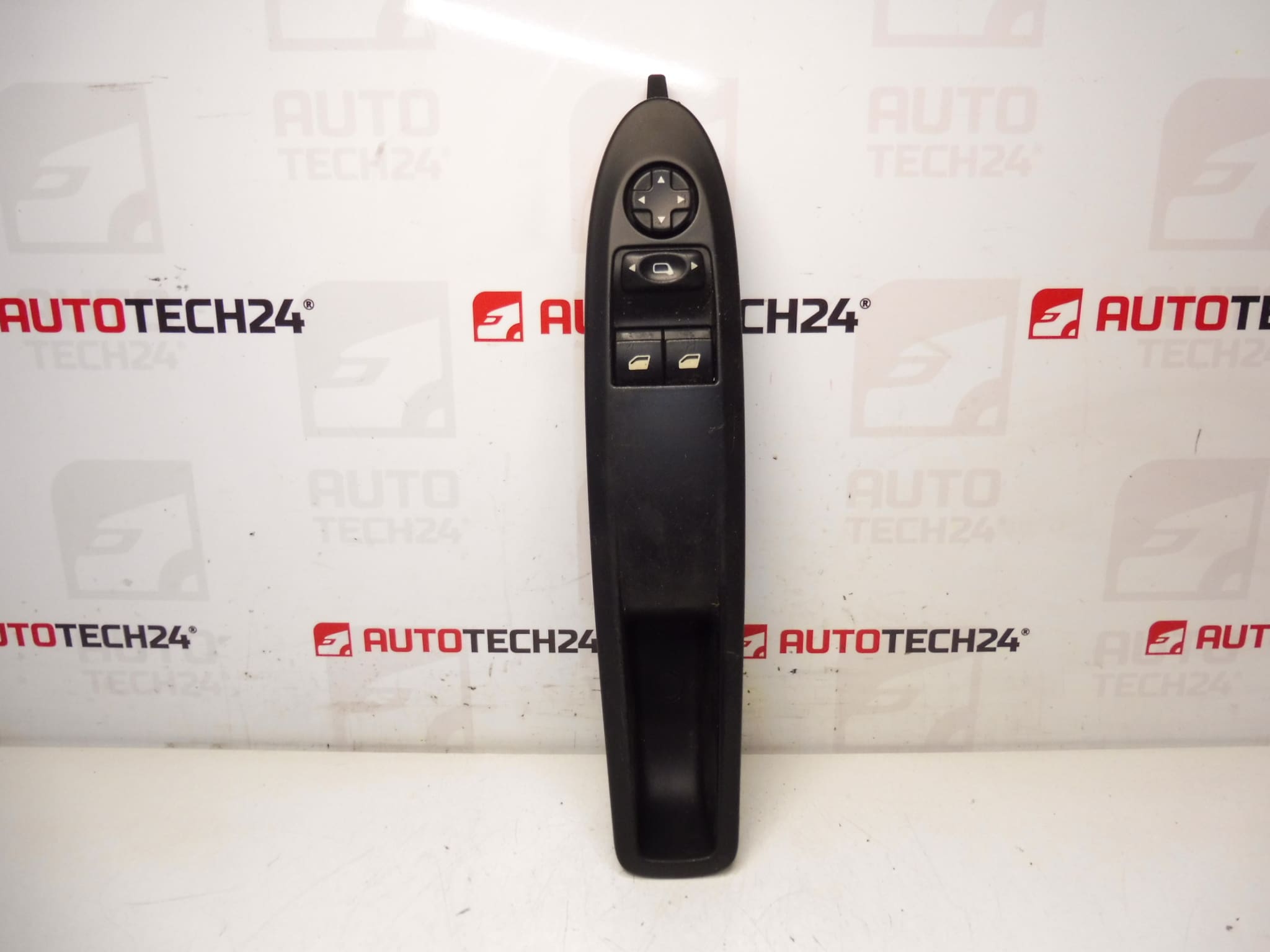 Originalni upravljački prekidač za podizače stakala i podešavanje retrovizora namijenjen za vozačeva vrata modela Citroën C4 II (B7) i DS4. Dio nosi tvorničke oznake 96657055ZD i 6490JW te je u potpunosti funkcionalan, s vidljivim tragovima korištenja. Prekidač upravlja jednom ili više funkcija: podizačima stakala, električnim podešavanjem i ponekad prespajanjem sklopa grijanih retrovizora, ovisno o izvedbi vozila.